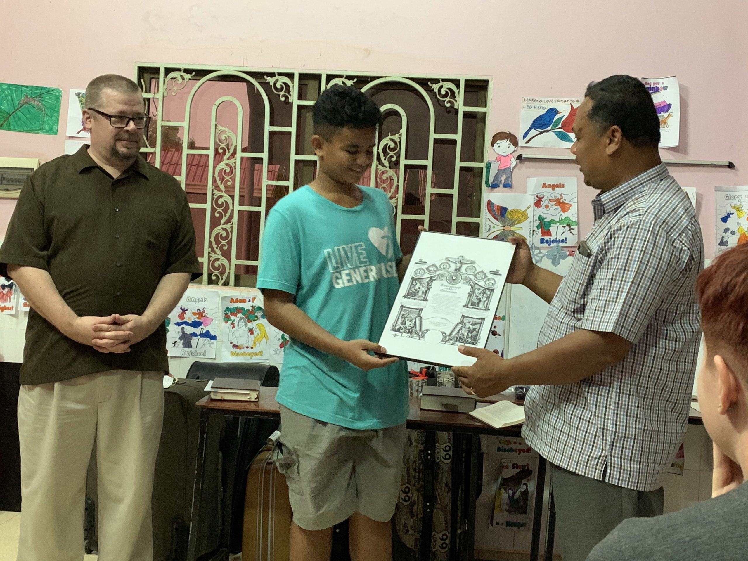 Pastor Kempin spoke to the children about the meaning of love, how we show it, and most importantly, Christ’s love for us. He asked the children what they would ask for if he could give them anything, one child said love, another peace, and one a big house. Pastor explained that when you know what real love is, life can be filled with joy whether you are rich or poor. Although these children are living in extreme poverty, the joy of Christ can be seen in their smiles.