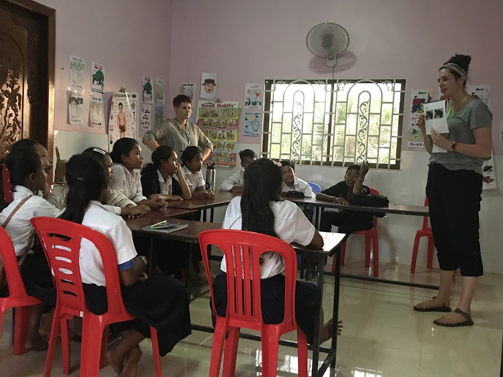 The rest of the day consisted of more ESL classes and fluoride treatments. We worked on painting murals during breaks between groups of students. We also got to experience a Cambodian delicacy during one of our breaks– durian! Durian is a fruit with a very…. distinct smell and
