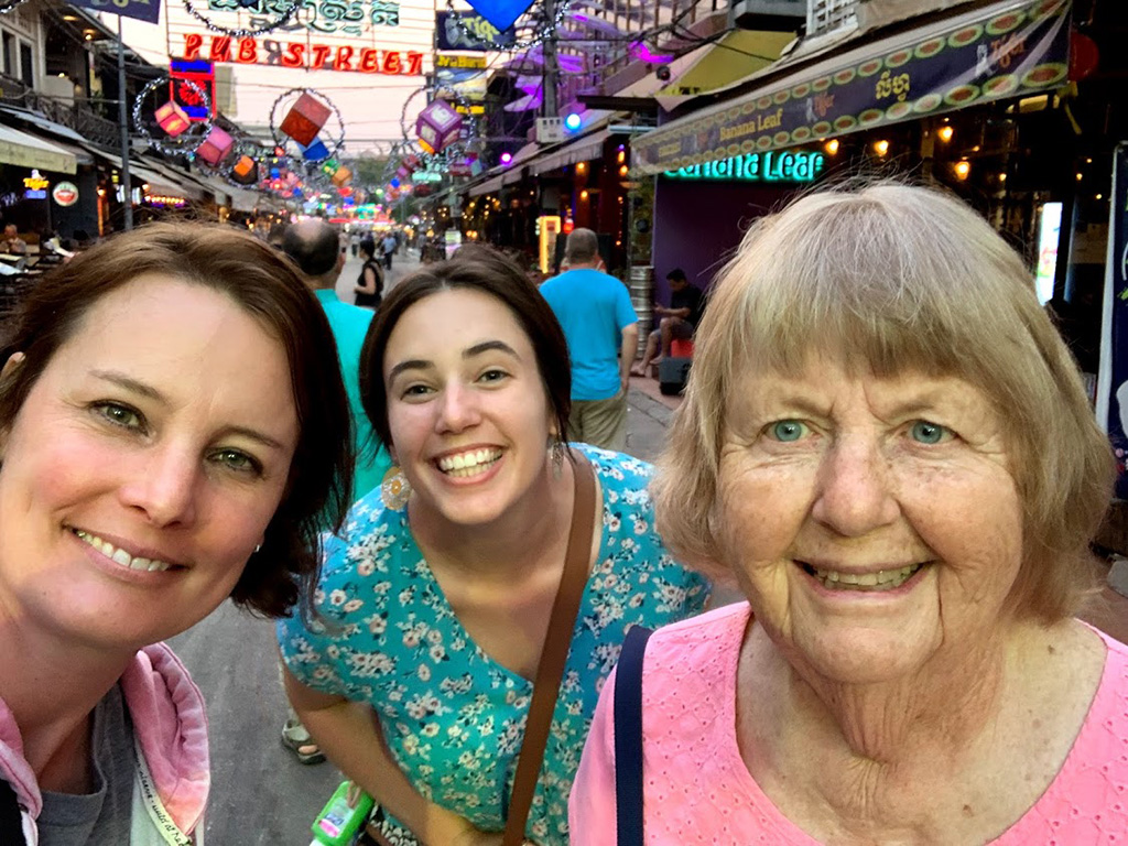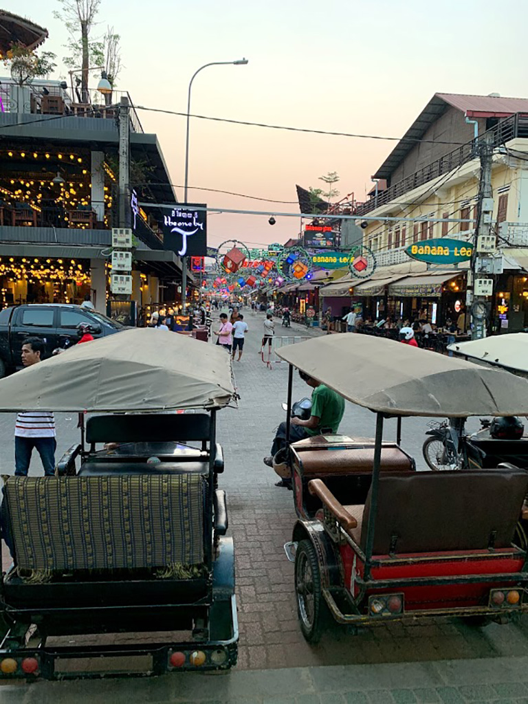 Around 3:00, we arrive at Angkor Wat and look for the Lucky Angkor, our hotel. We were in awe and were able to swim in the pool. Julie had to put on a shirt as she was cool. You see, the temperature dropped to 86. We ate supper at the Red Piano. Lots of people from other countries are here now. We went shopping at the Night Market and were so proud of our “wheeling and dealing” after a little tutorial from Jesse.